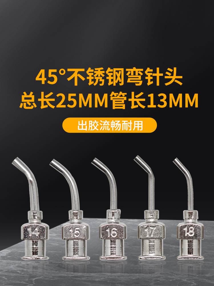 单管弯45度不锈钢针头总长25mm针筒配件针咀点胶机...