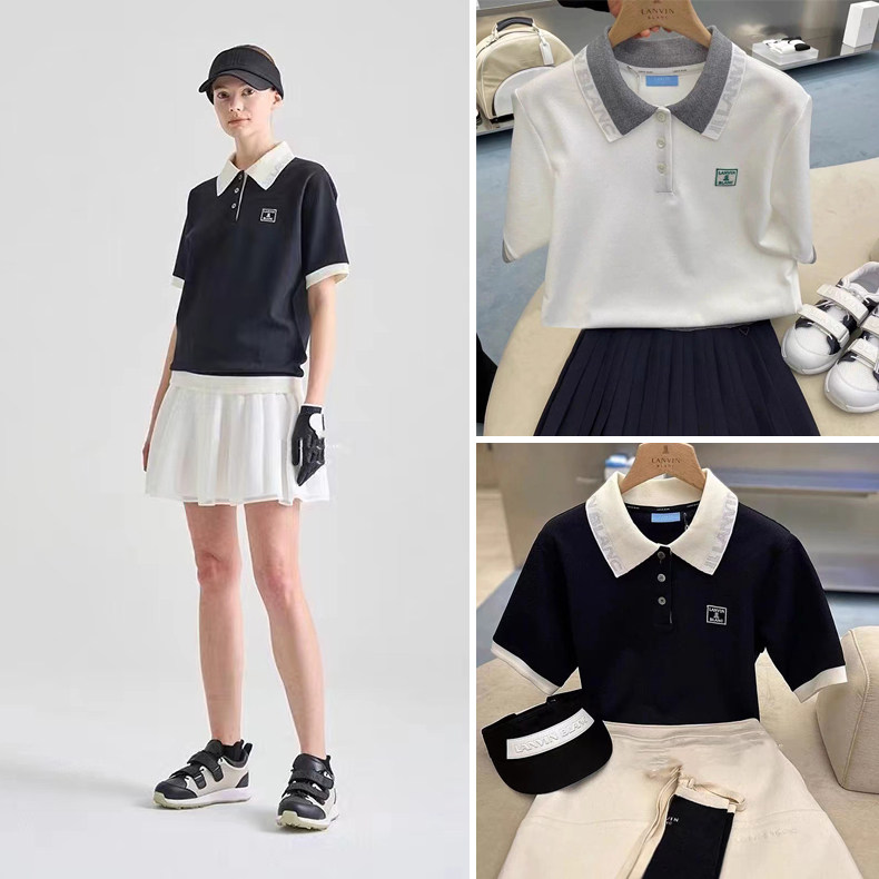 韩国高尔夫女士23新款夏季服装修身显瘦罗纹款翻领...