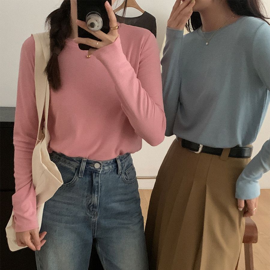 6UP 韩系纯色T恤长袖早秋 2023广州13行新款休闲圆...