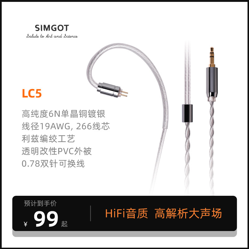 SIMGOT兴戈耳机线LC5 可换线升级线4.4mm/3.5mm