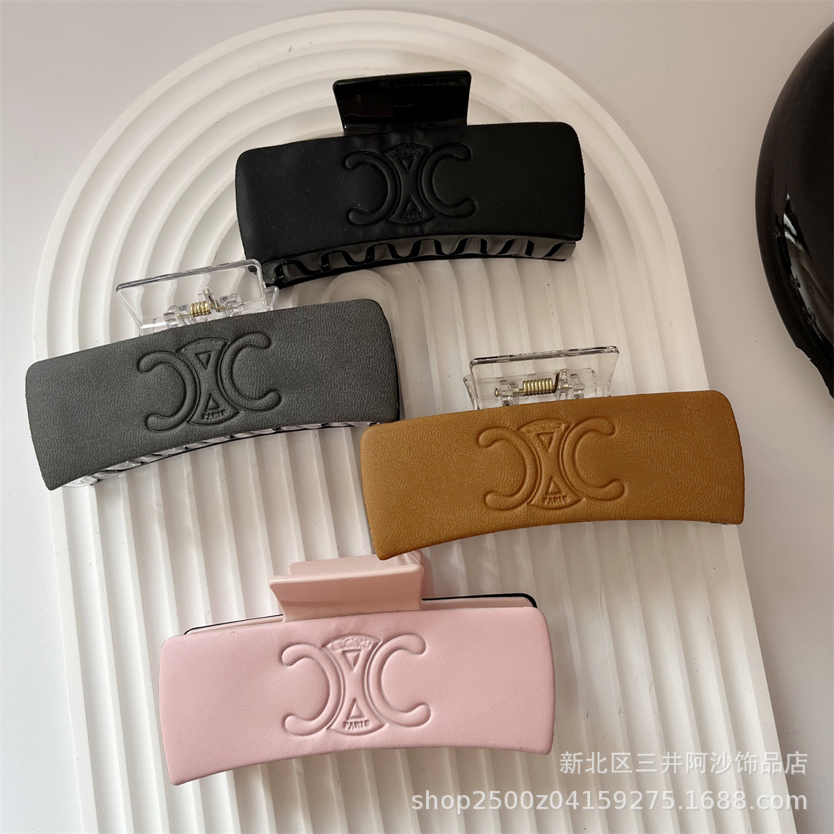 凯旋门字母Pu皮抓夹发夹后脑勺盘发鲨鱼夹高级感发...