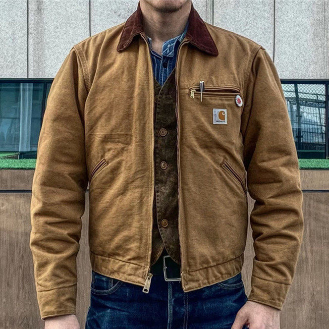 工装之神!底特律咔哈特J97款绒面烟草色绵羊皮真皮...