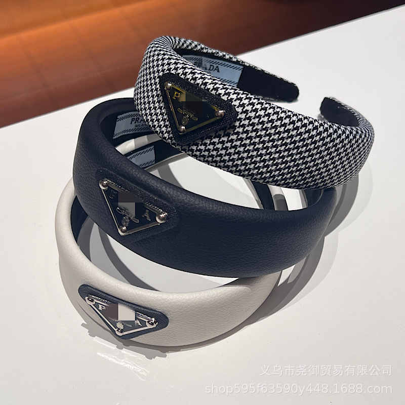 新款高级感气质pu皮发箍倒三角头箍千鸟格简约时尚...