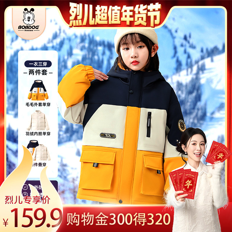 【烈儿超值年货节】巴布豆男女童外套二合一羽绒内...