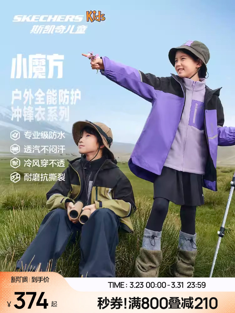 Skechers斯凯奇儿小魔方秋冬童装冲锋衣三合一男女...