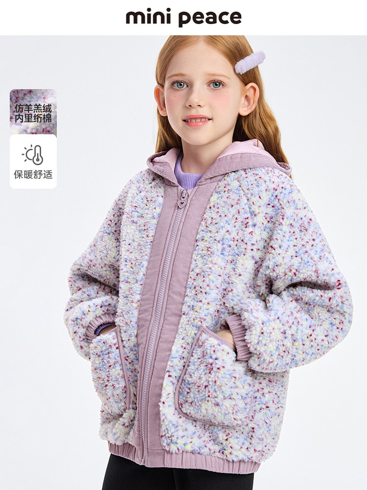 MINIPEACE太平鸟童装女童仿羊羔绒外套儿童夹克秋冬...
