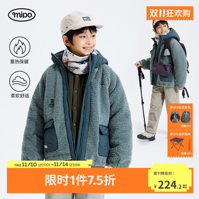 mipo冬季儿童棉服男女童加厚羊羔绒外套户外保暖棉...