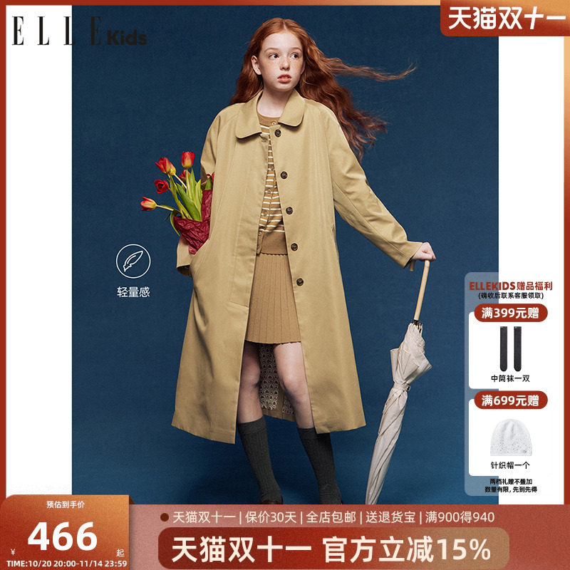 ELLEkids童装 复古插肩袖松弛感风衣女童秋季气质优...