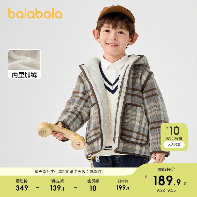 巴拉巴拉童装儿童外套男童上衣2025秋冬加绒格纹连...
