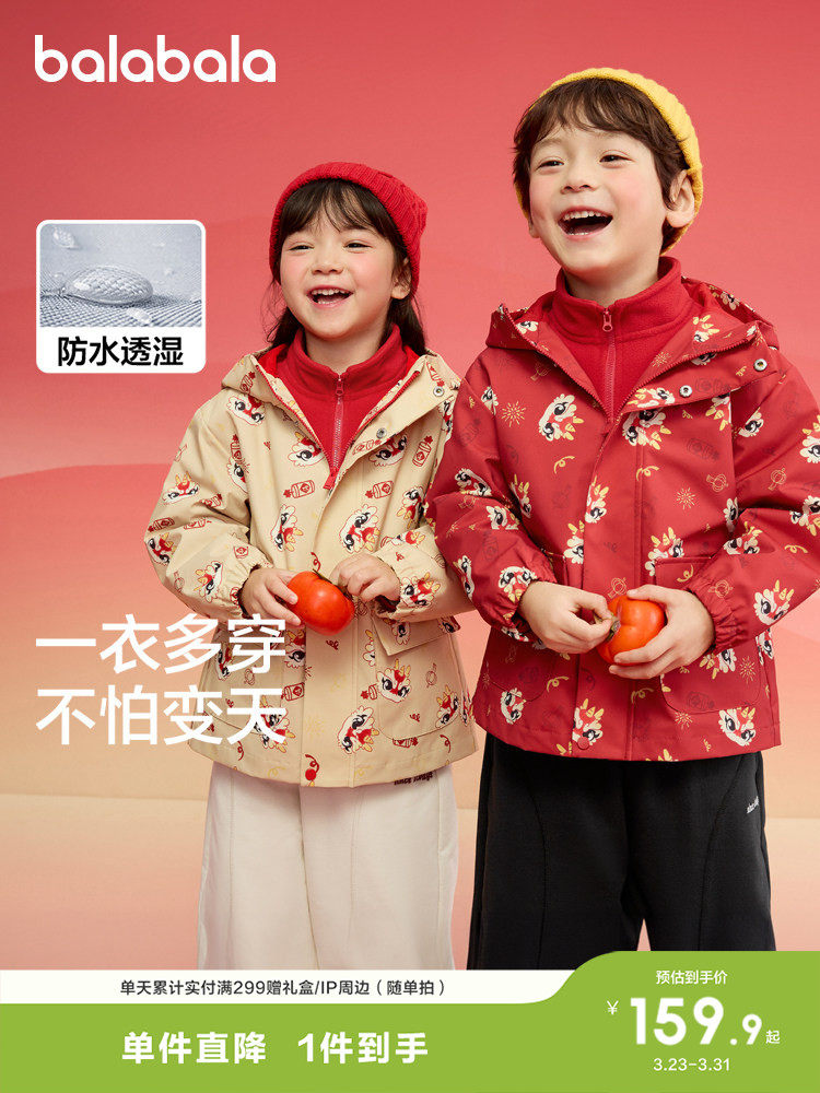 巴拉巴拉童装儿童外套男童衣服春秋女童两件套早春...