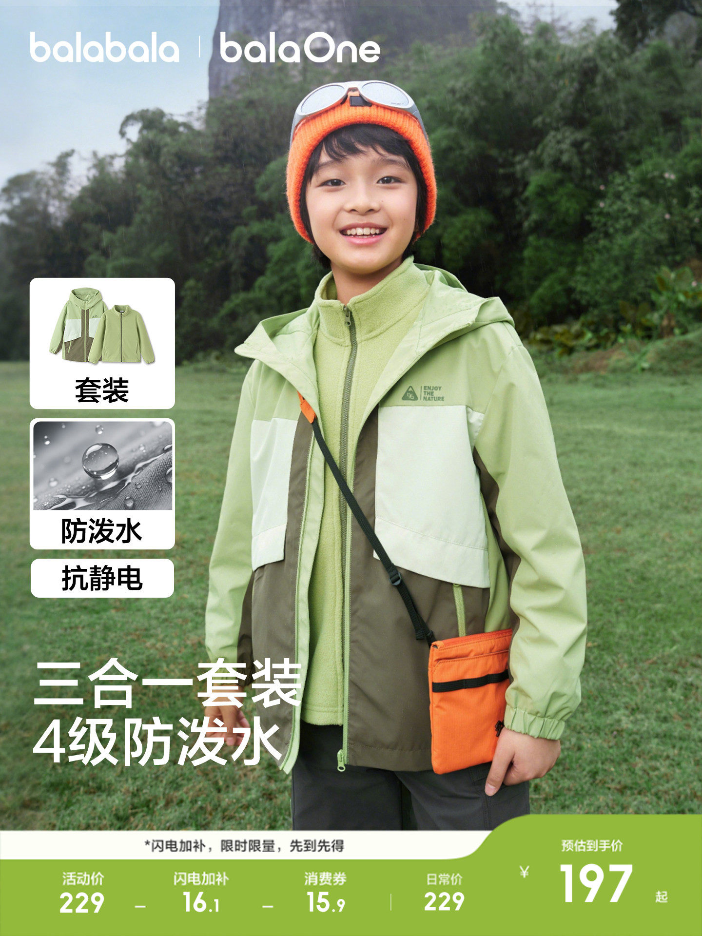 巴拉巴拉童装男童厚外套儿童上衣2026春装透湿摇粒...