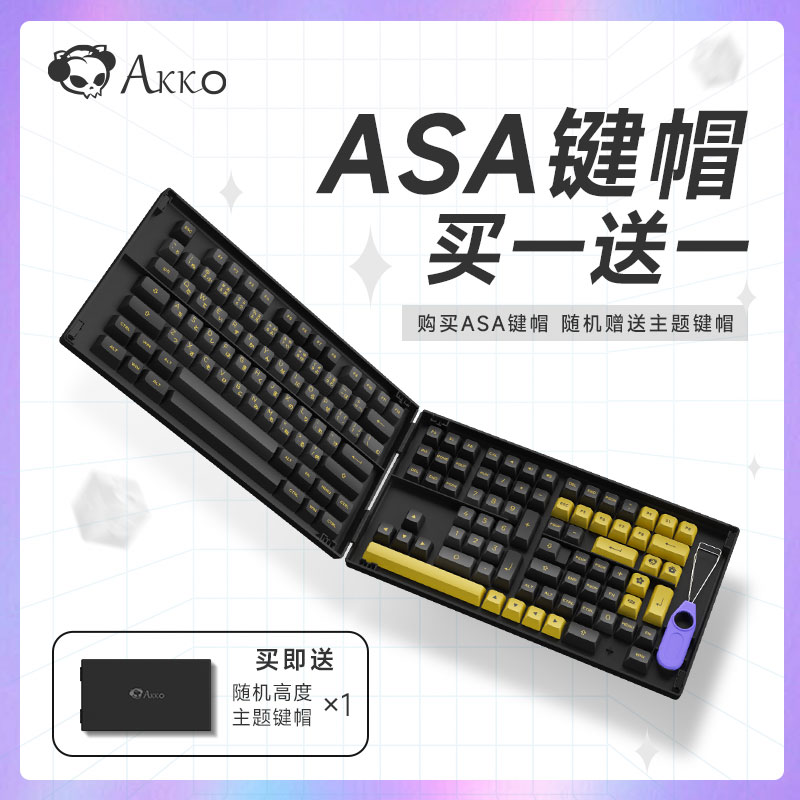 AKKO ASA高度PBT球帽克莱因蓝黑粉大碳红豆9009客制...