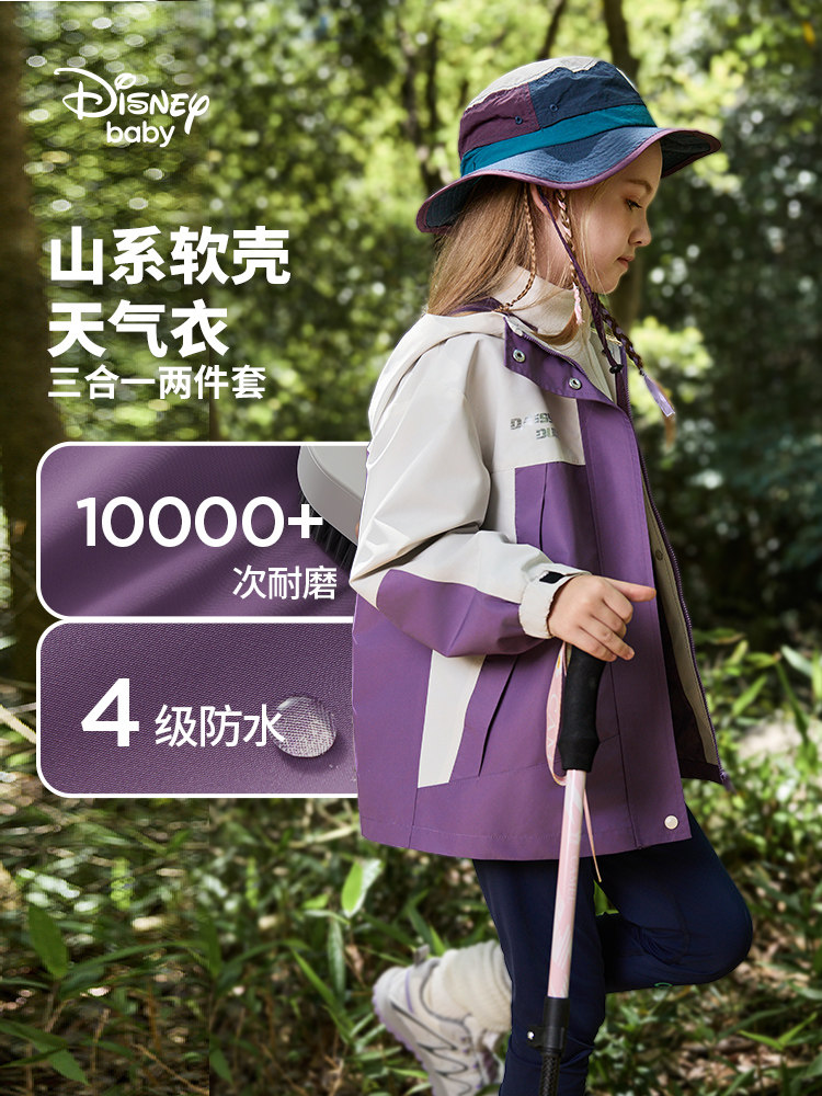 迪士尼女童户外冲锋衣三合一可拆卸2026春装防风儿...