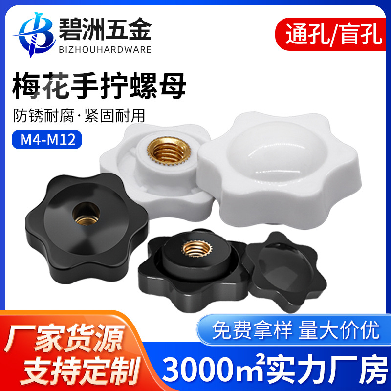 梅花手柄螺母星型胶头手拧螺母塑料旋钮把手铜芯螺...