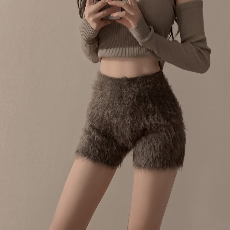 2022秋冬新款珊瑚绒保暖休闲裤高腰紧身小众女短裤...