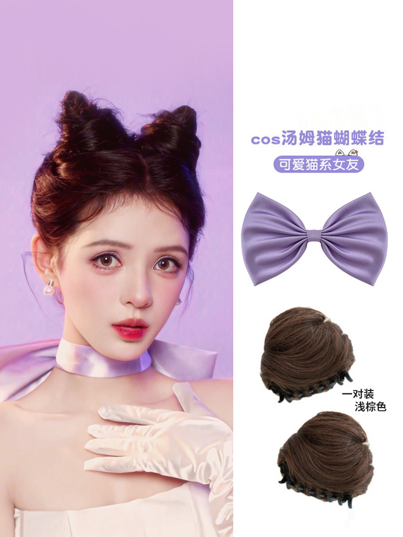 张予曦周也汤姆猫紫色蝴蝶结大项圈cos猫耳朵发夹假...