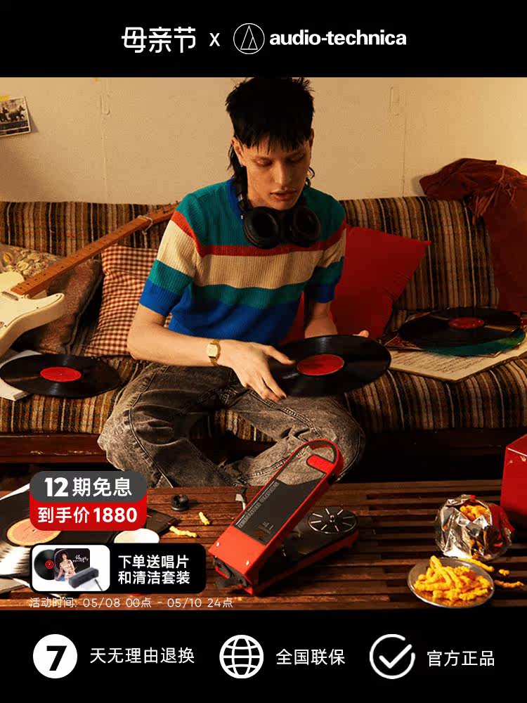 铁三角AT-SB2022限量珍藏便携黑胶唱片机无线蓝牙充...