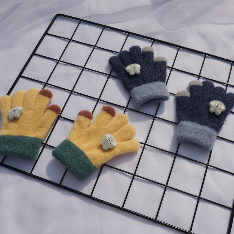 儿童手套可爱卡通全指保暖手套冬季户外防寒针织手...