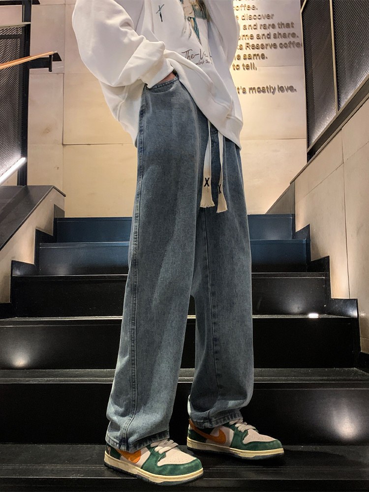 复古阔腿牛仔裤男ins潮牌早春季宽松直筒美式高街百...