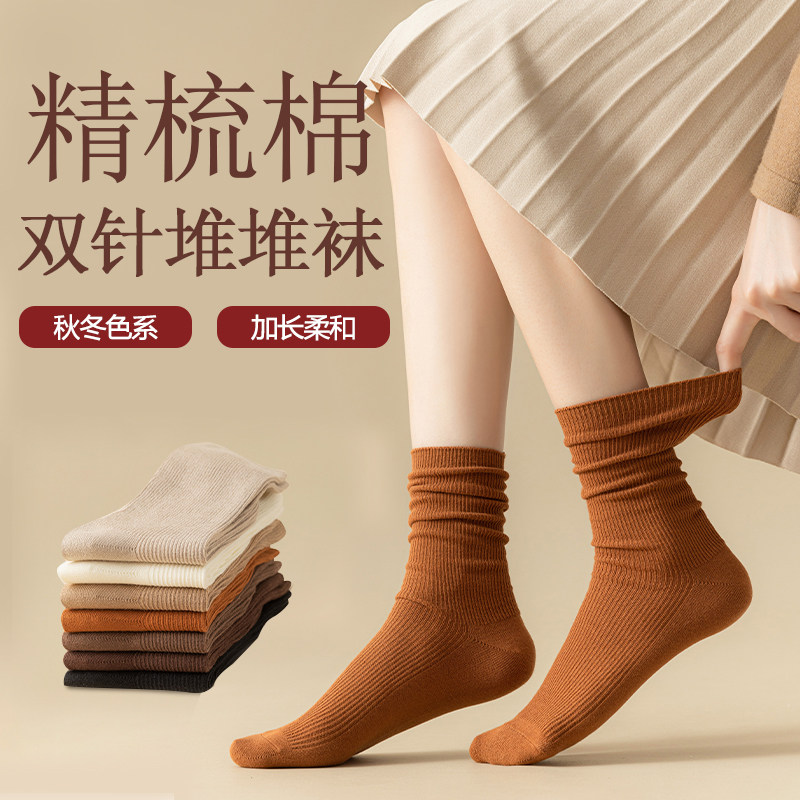 诸暨袜子中筒袜秋冬季纯棉堆堆袜女款月子中长款纯...