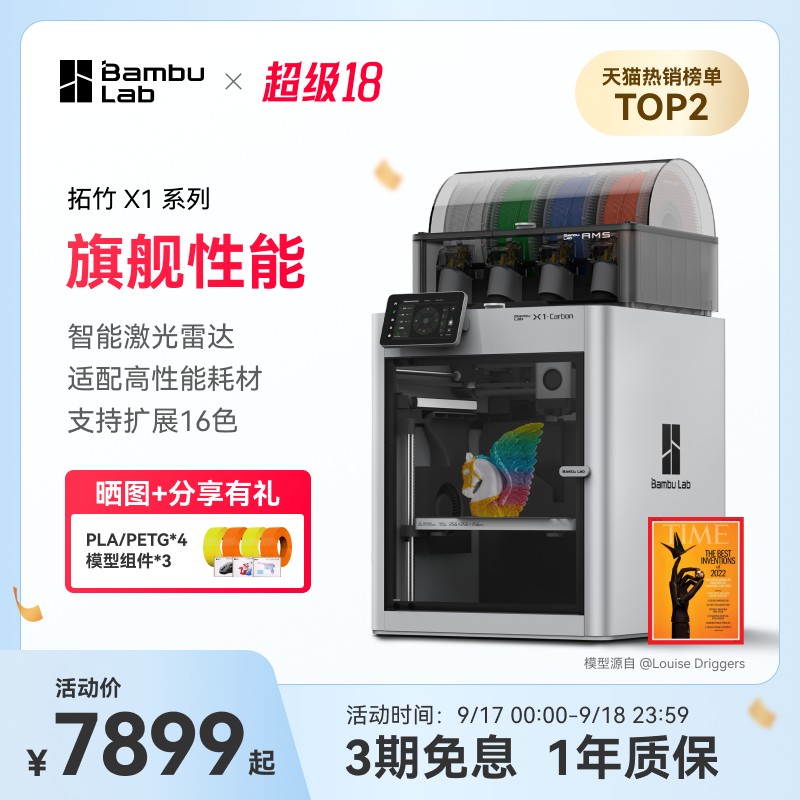 拓竹X1系列 3D打印机桌面家用FDM全自动调平大尺寸...