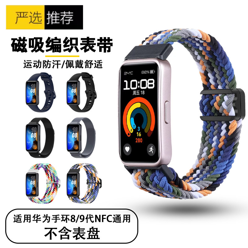 适用:华为手环9/8代磁吸滑扣编织表带band8/9硅胶替...