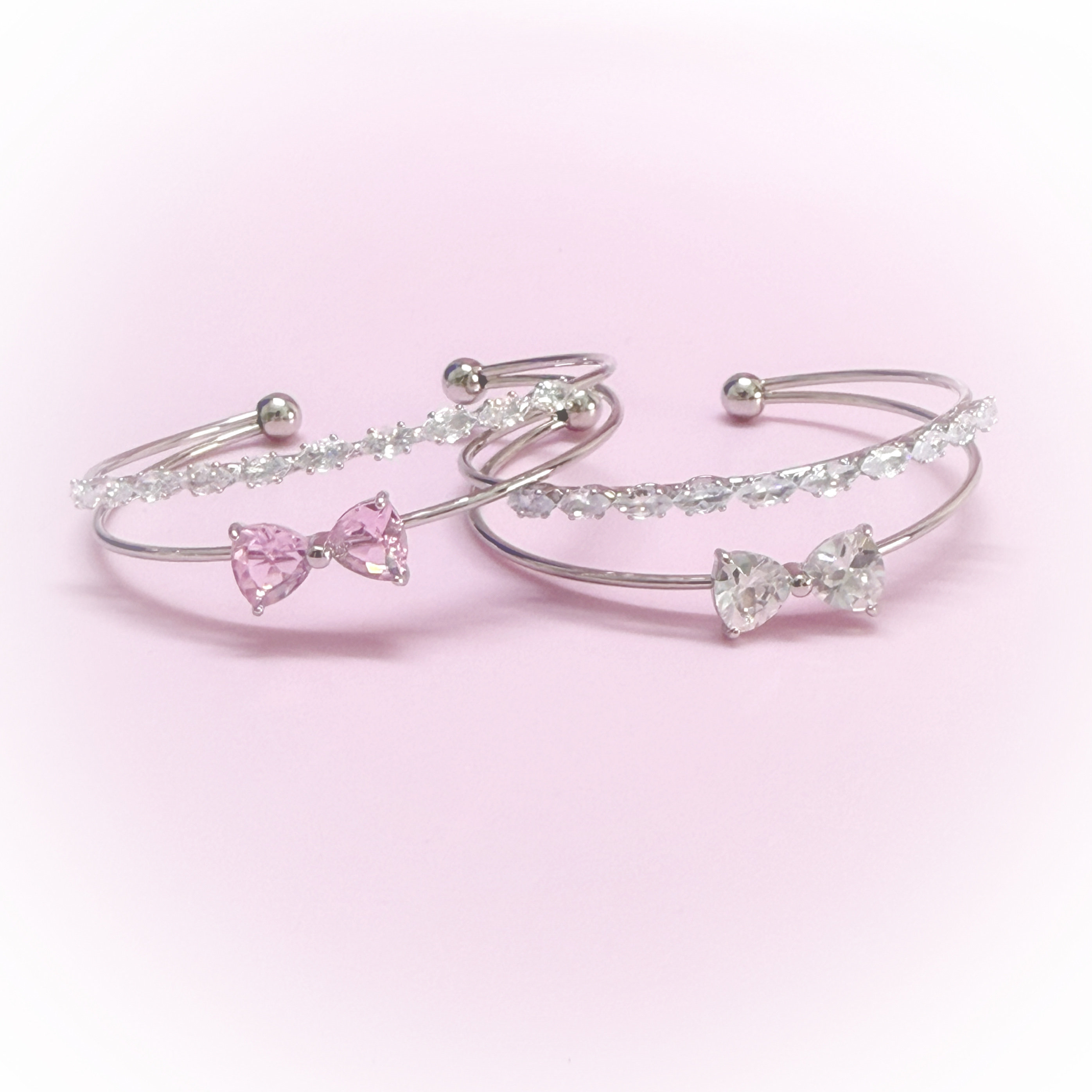 量产量产系小众设计日系甜美锆石双层蝴蝶结开口手...