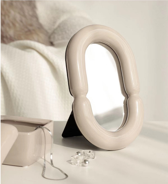 现代轻奢卧室梳妆台陶瓷网红化妆镜家用台式桌面装...