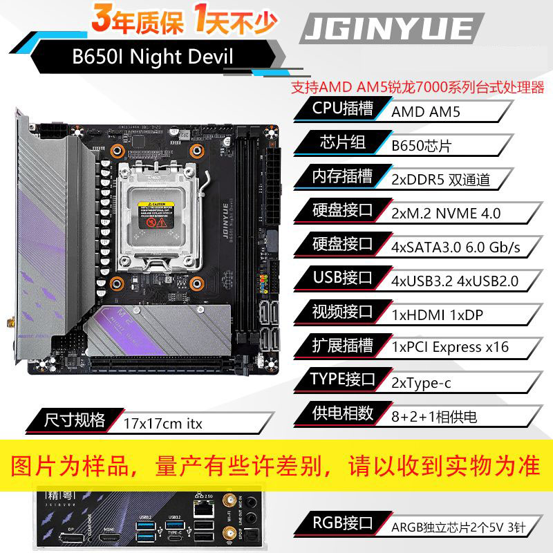 精粤B650i Night Devil主板itx迷你DDR5电脑AM5支持...
