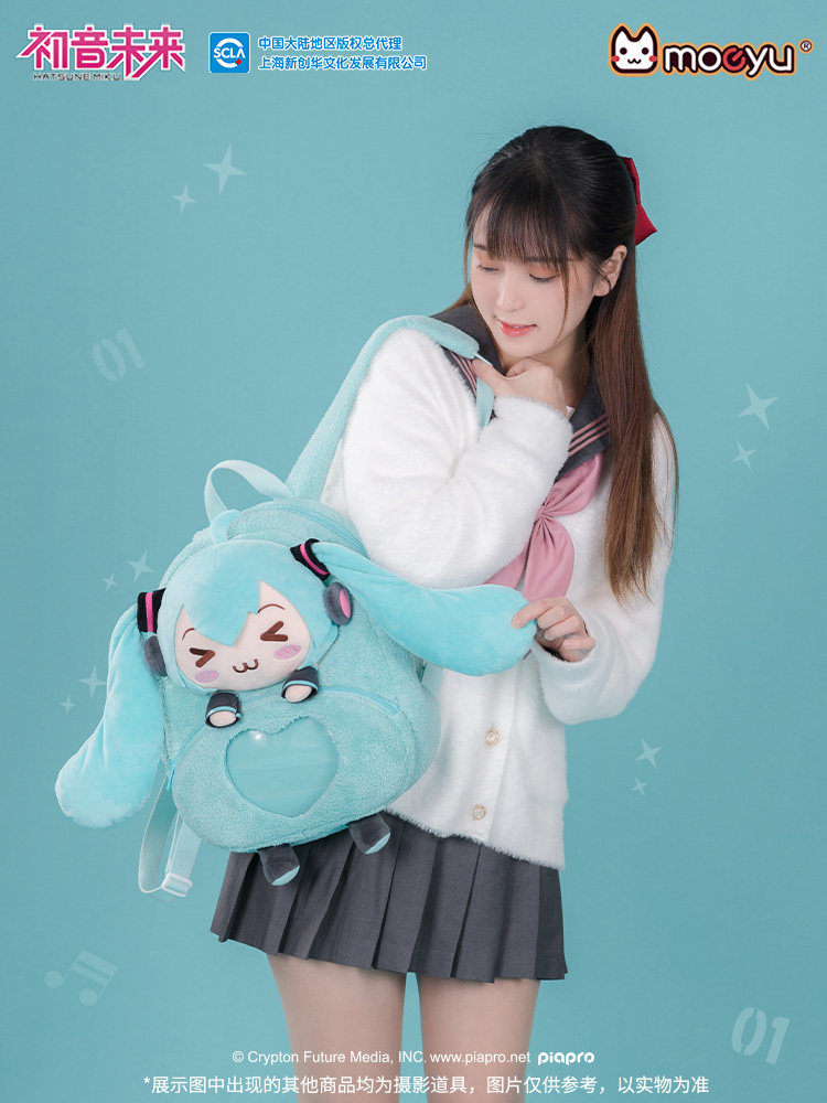 moeyu初音未来眯眯眼系列双肩包miku可爱毛绒小背包...