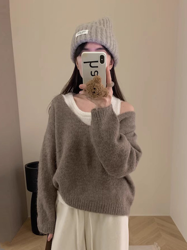 韩国chic秋冬简约气质软糯针织保暖背心+宽松百搭长...