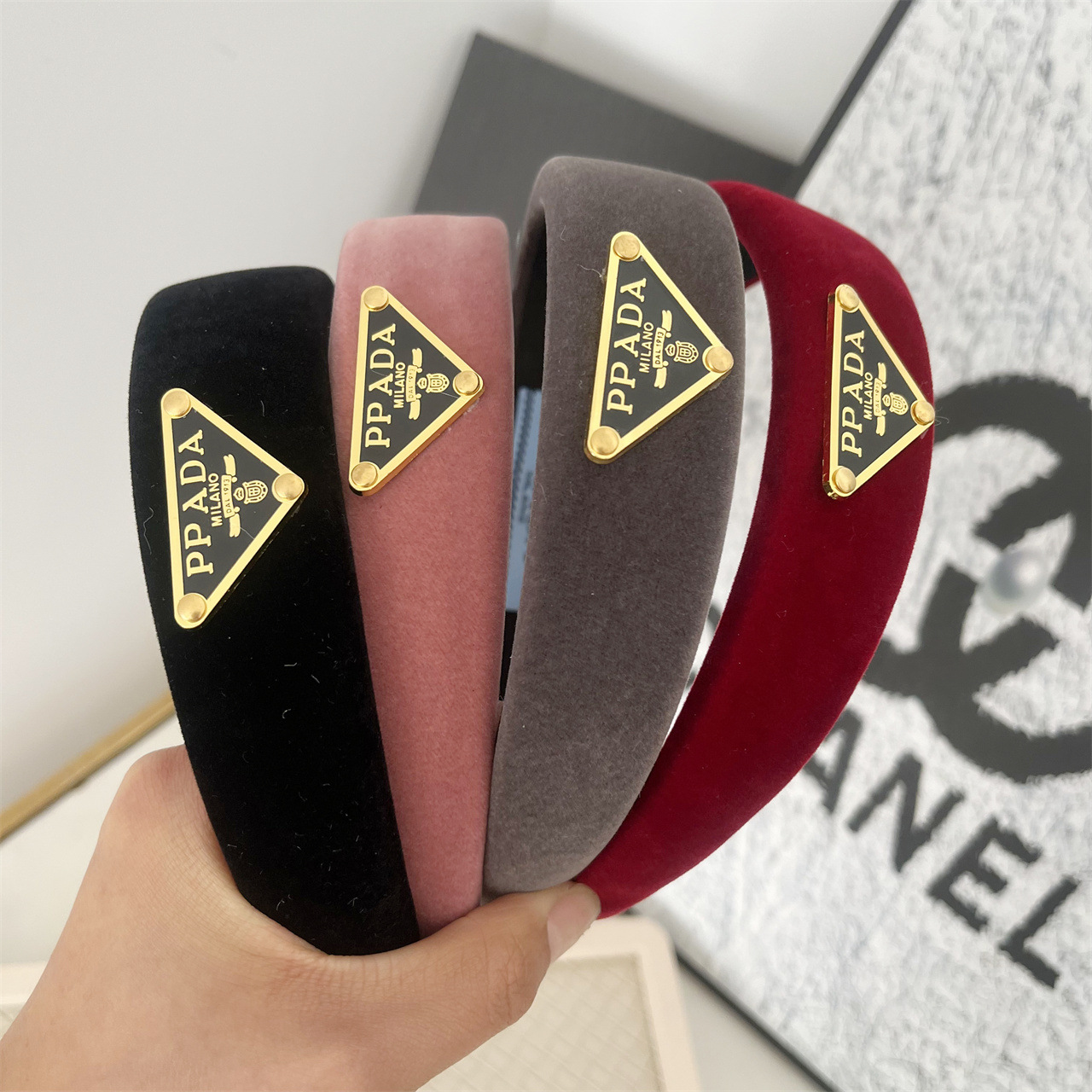新款2024三角字母弹簧夹丝绒蝴蝶结飘带发饰双层皮...