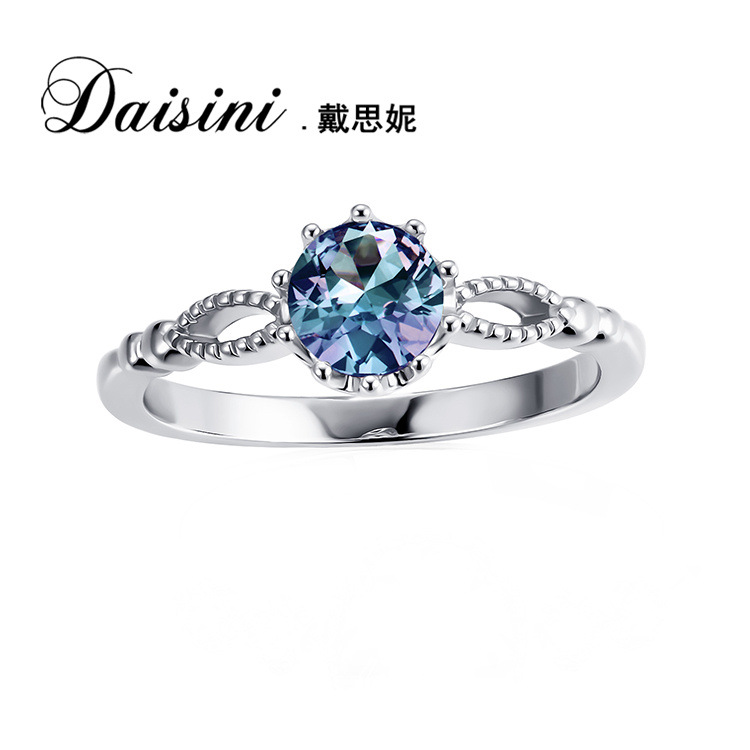S925银饰流行人造合成宝石变色刚玉欧美简约几何型...
