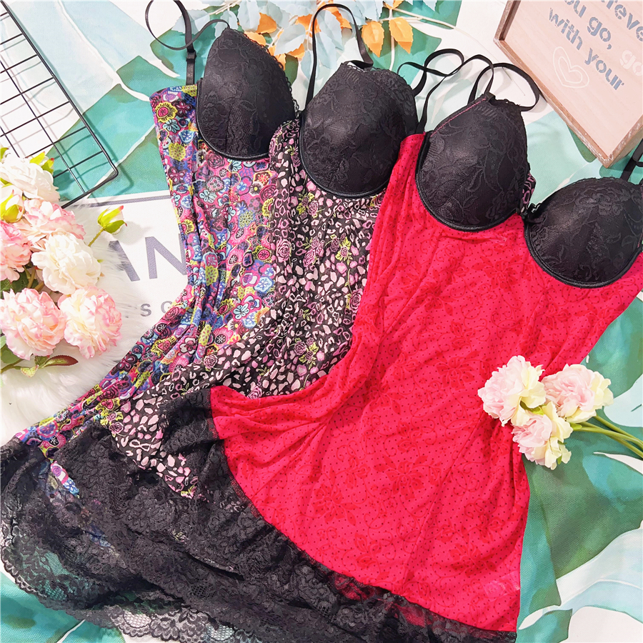 Z484 新品杂款花色吊带睡裙衣长款海绵薄杯有钢圈免...