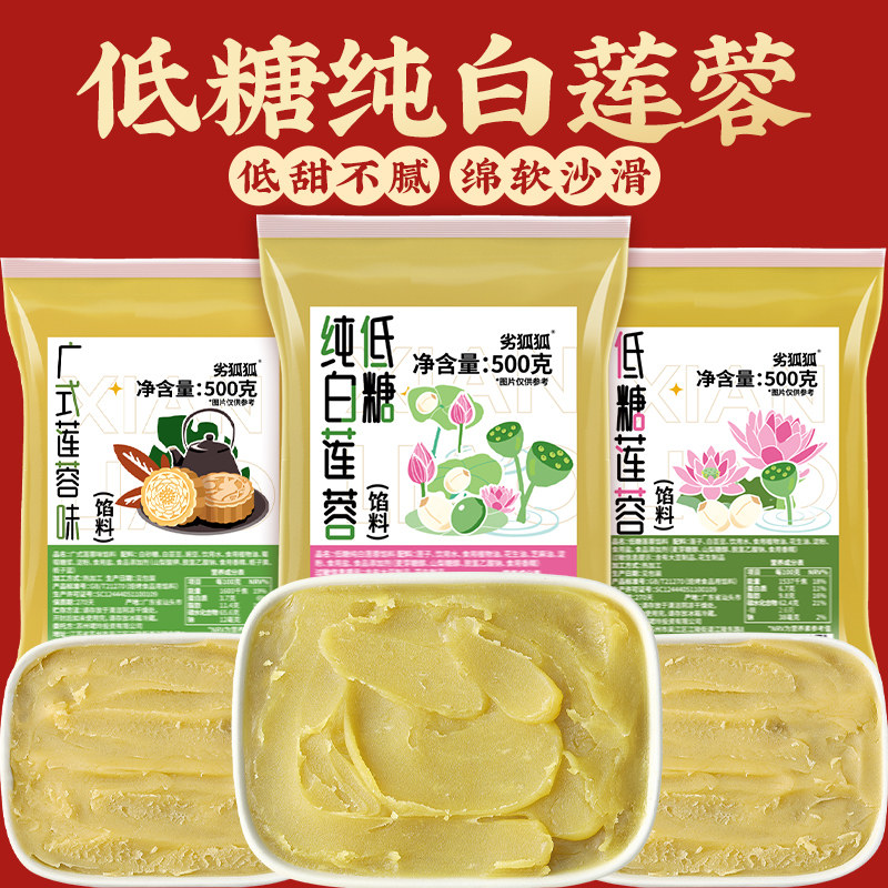 低糖纯白莲蓉月饼馅料红豆沙金沙奶黄枣泥五仁蛋黄...