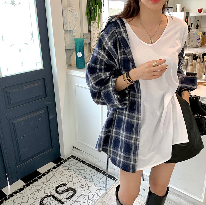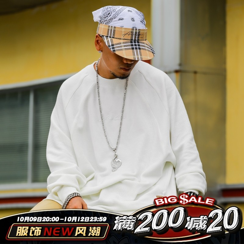 Acusa 基础华夫格小领口螺纹拼接套头宽松肥大纯色t...
