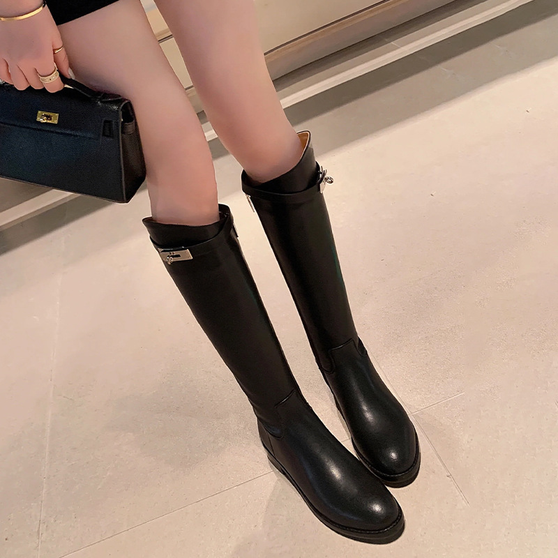 全牛皮~2023年新款真皮厚底高筒靴长筒靴不过膝长靴...