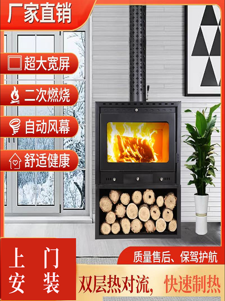 复古欧式真火壁炉燃木柴火取暖炉嵌入式农村别墅民...