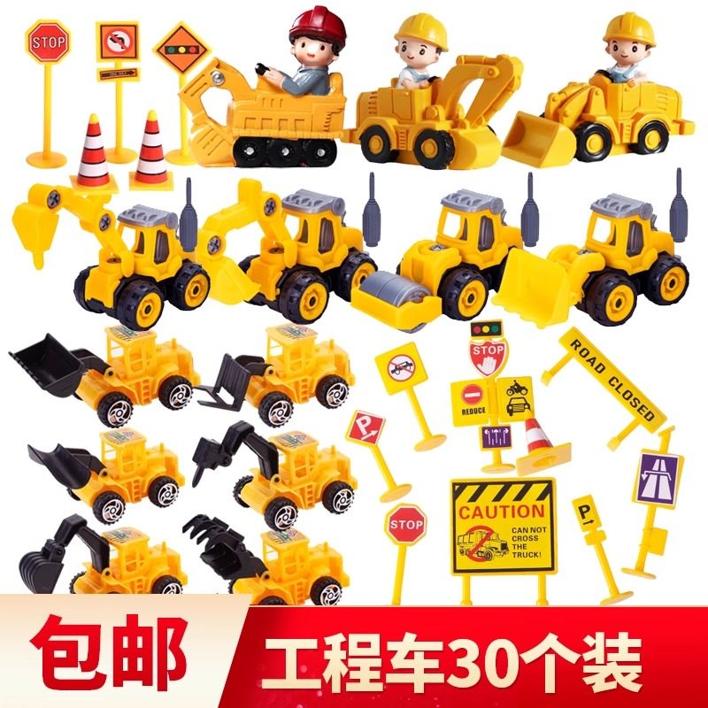 工程车蛋糕装饰摆件挖掘机挖土机铲车路障牌男孩儿...