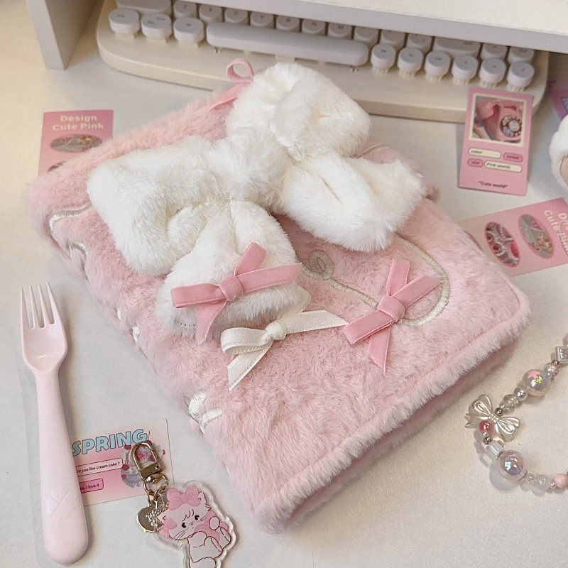 少女心事粉扑扑可爱A5毛绒卡册蝴蝶结活页卡册3寸小...
