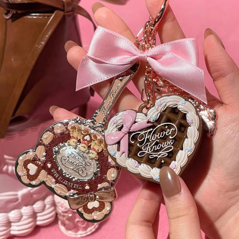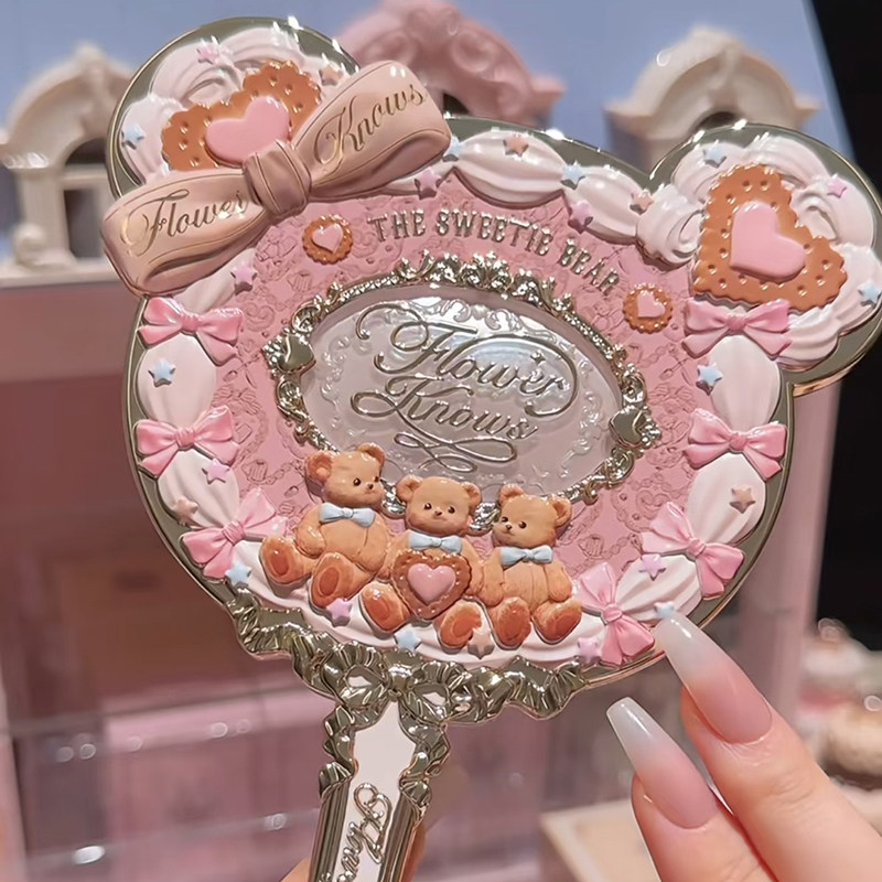 花知晓甜心小熊系列化妆镜手持镜子甜美少女随身便...