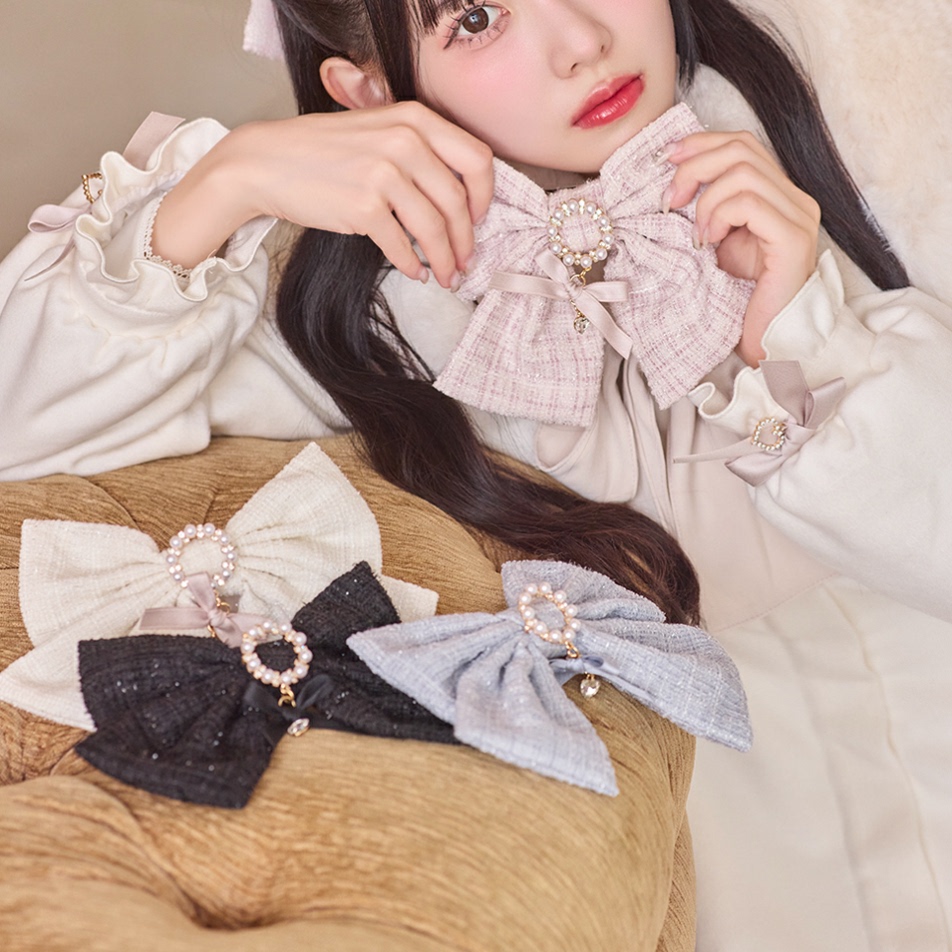 日系rojita甜美可爱小香风蝴蝶结发夹镶钻水钻弹簧...