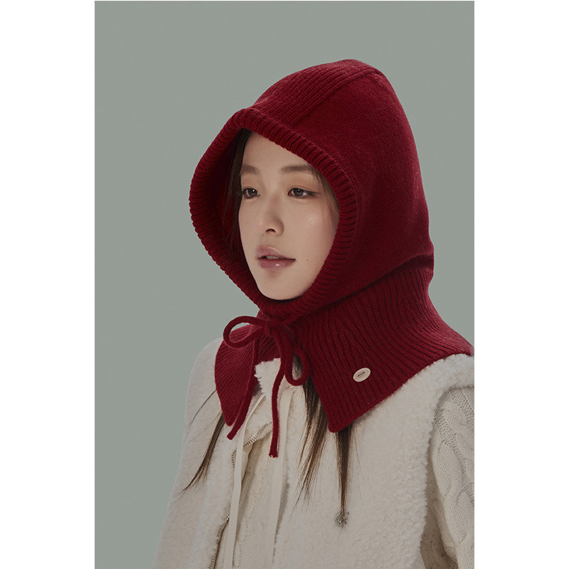 全羊毛红色巴拉克拉法帽女冬保暖安可拉红针织毛线...