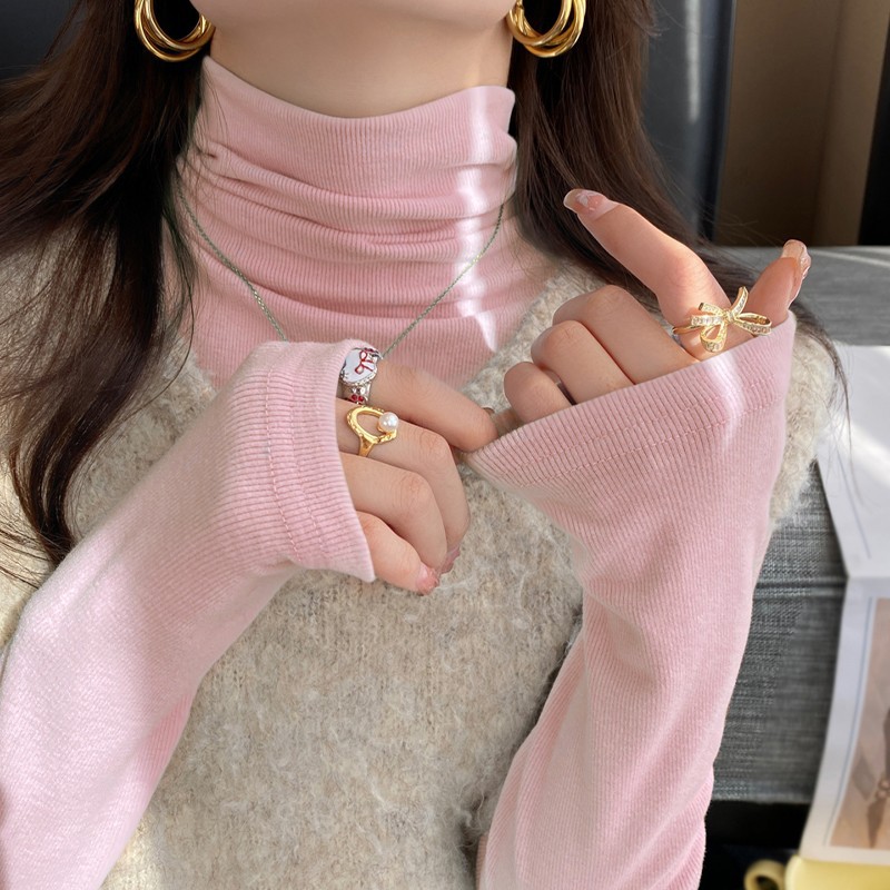 磨毛堆堆领打底衫女内搭2025秋冬季新款修身高领保...