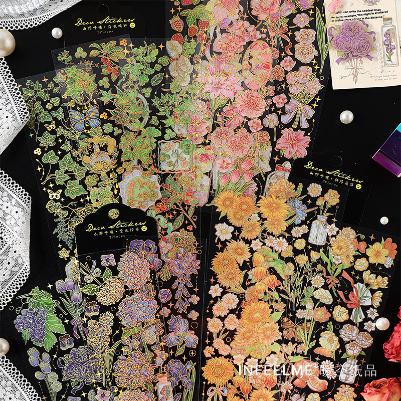 Infeel.Me立体烫金PET贴纸 山野呼啸系列 植物复古...