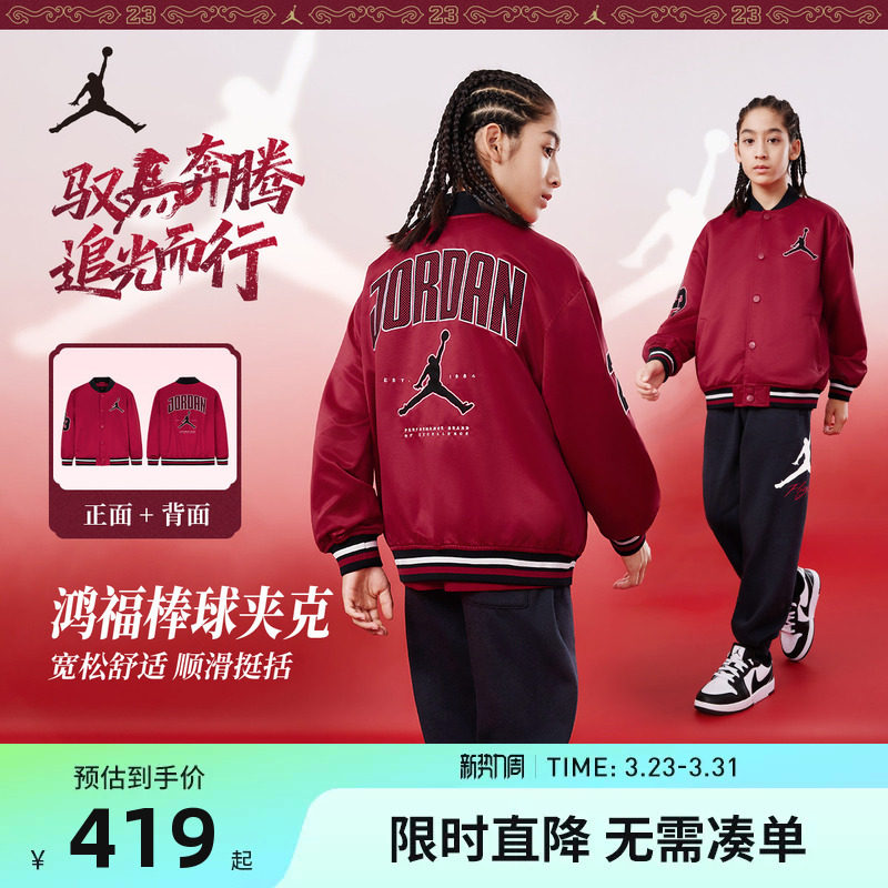 Jordan童装儿童夹克帅气棒球服2026春季新款男童外...