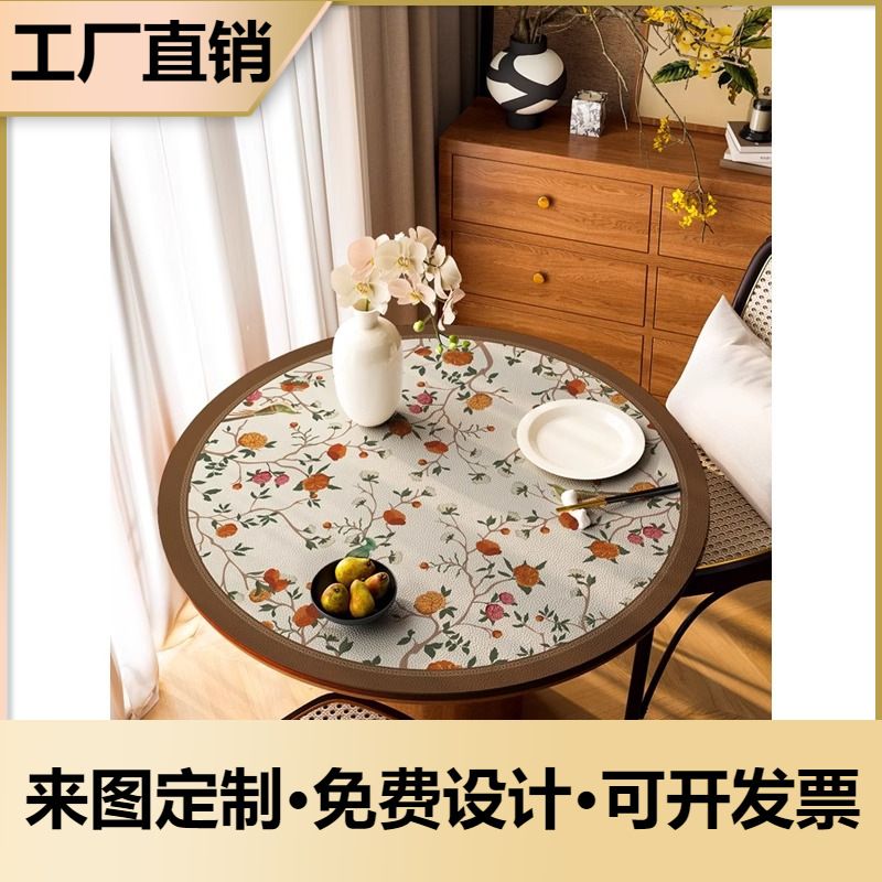 新中式小圆桌桌垫圆形餐桌垫防水防油茶几桌布轻奢...