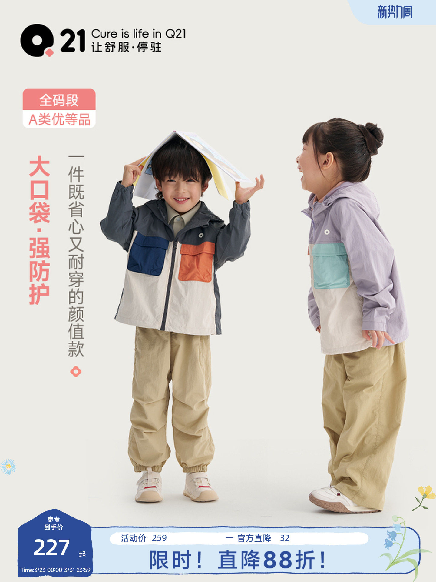 Q21儿童大口袋外套亲子款男女防风防晒透气耐磨春季...