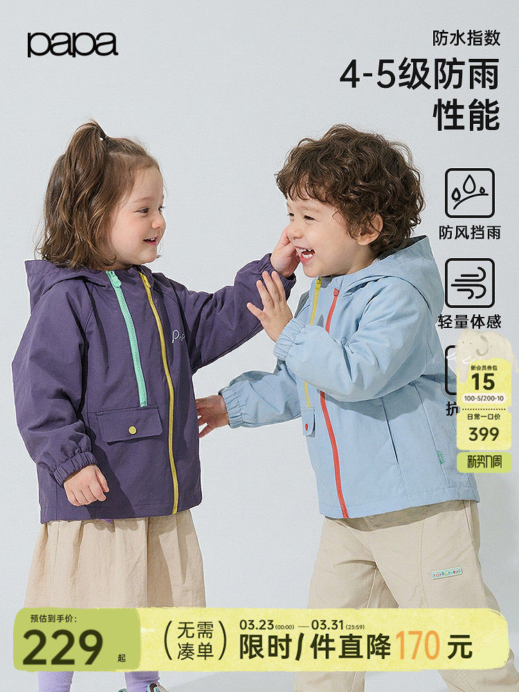 【小俏壳】papa爬爬春季儿童外套防水男女童户外运...