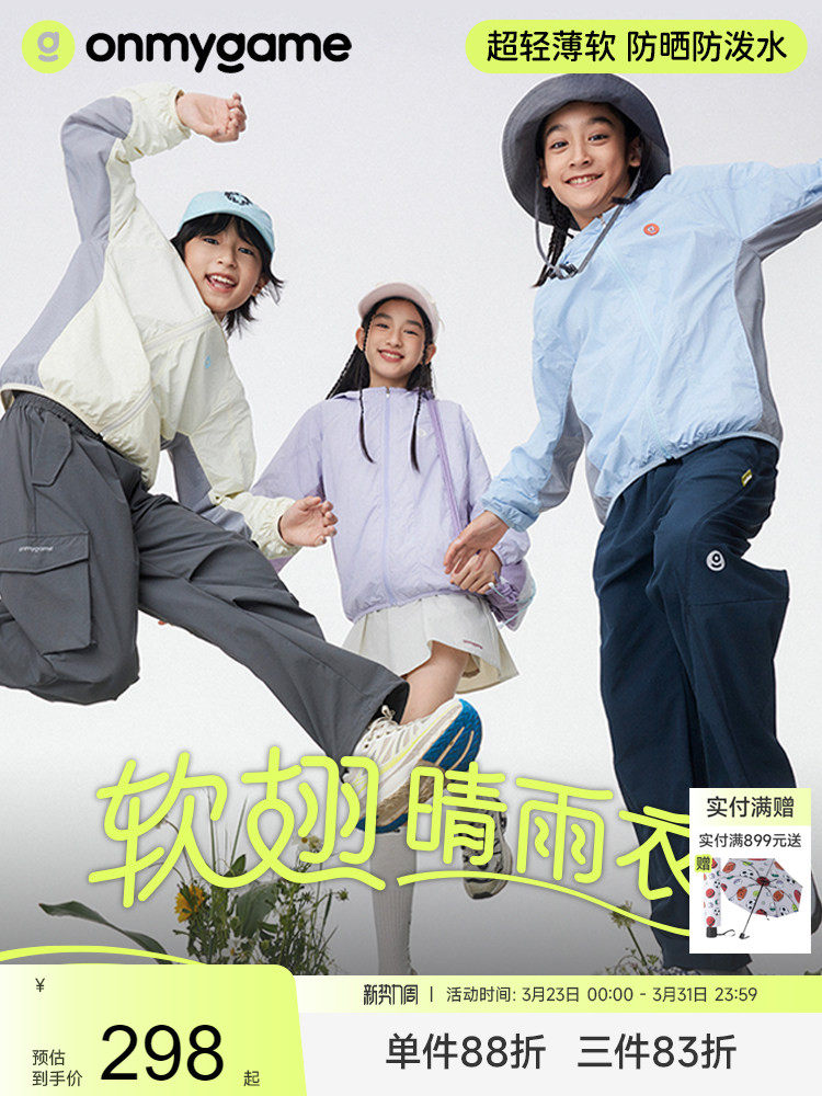 onmygame【软翅】晴雨衣儿童外套男女童防晒衣户外...
